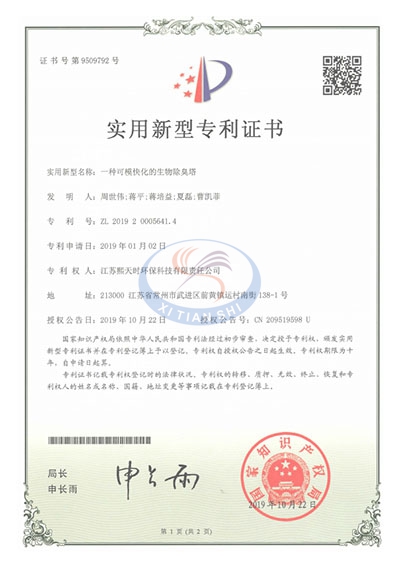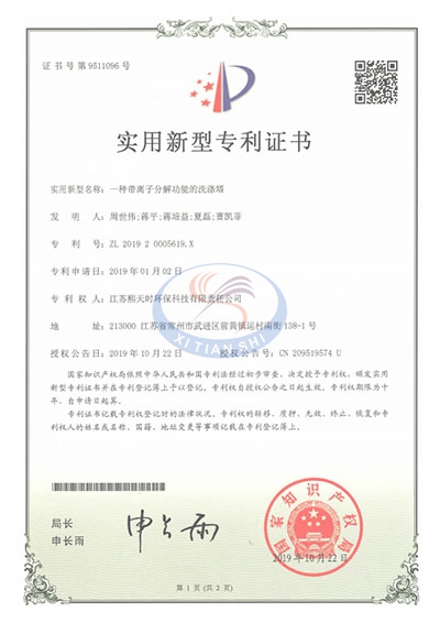 凈化塔-發(fā)明專(zhuān)利證書(shū)